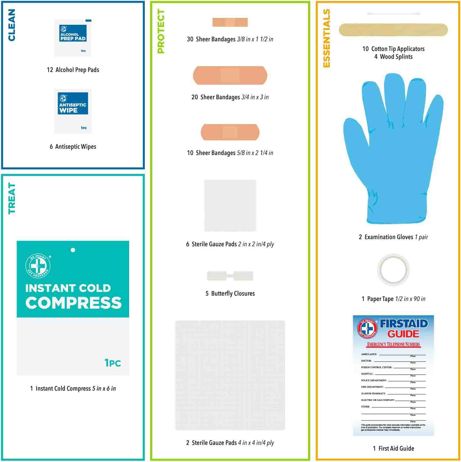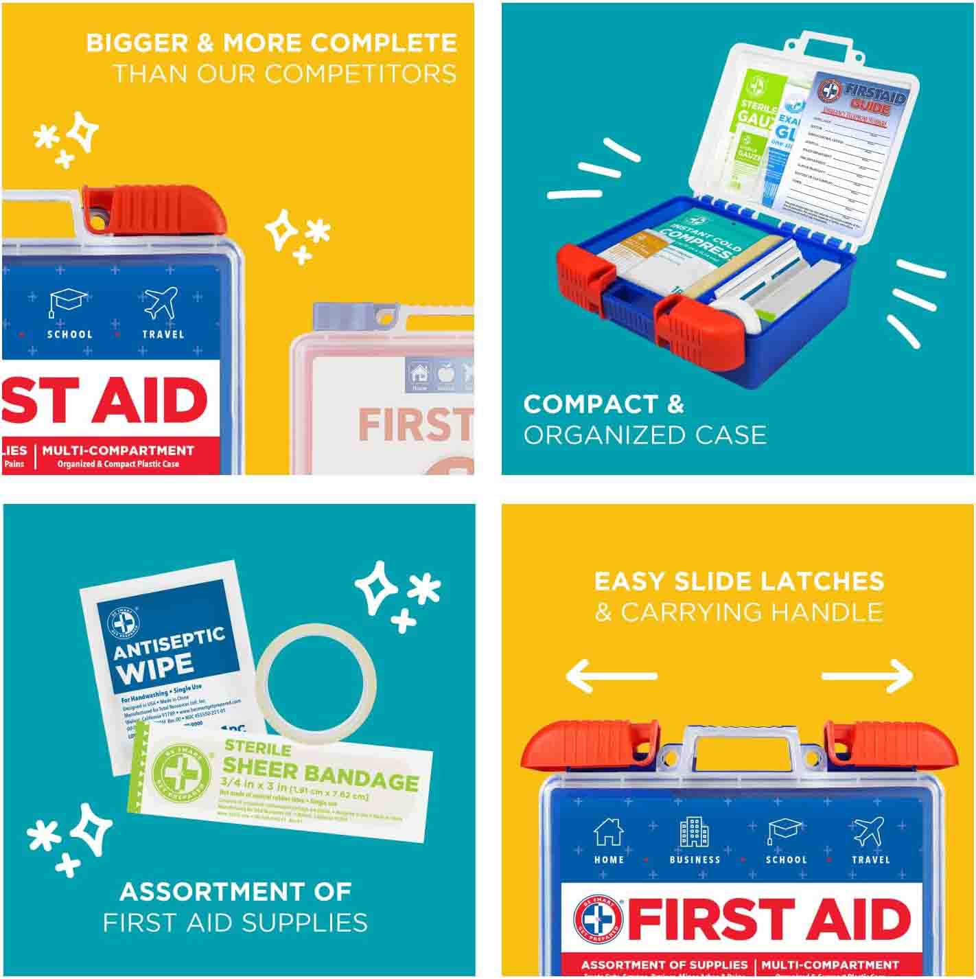 O kit de primeiros socorros de plástico de 180 peças adota um interruptor suave e um design translúcido, facilitando a visualização de suprimentos médicos. Ao mesmo tempo, existem compartimentos em dois andares no interior, que podem ser classificados para diferentes medicamentos para facilitar o acesso.