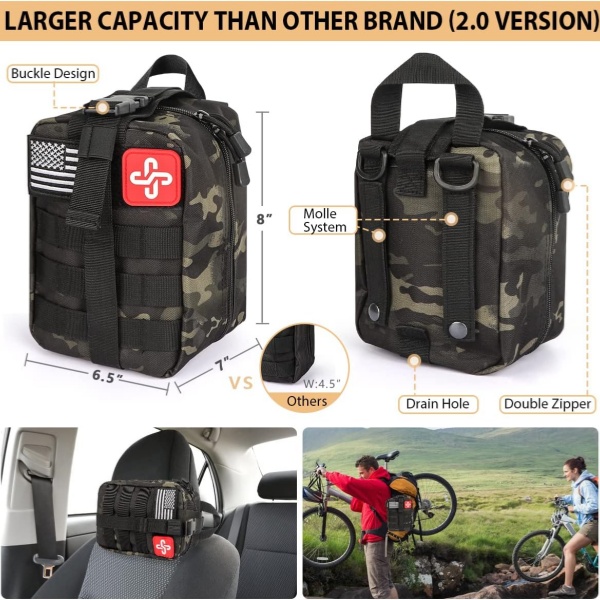 Kit tático de primeiros socorros de sobrevivência MOLLE para uso em emergências e ao ar livre