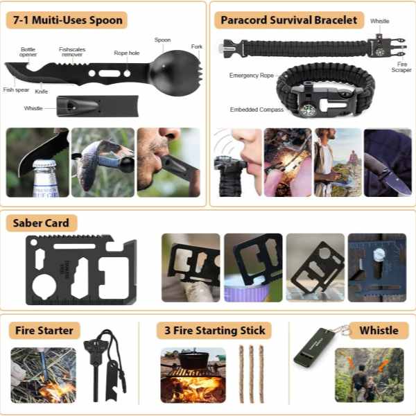 O Ultimate Outdoor Survival Kit foi projetado para caminhantes, campistas, equipes de resgate e qualquer pessoa que se prepare para emergências inesperadas ao ar livre. Usando materiais duráveis e resistentes às intempéries e componentes de nível profissional, este