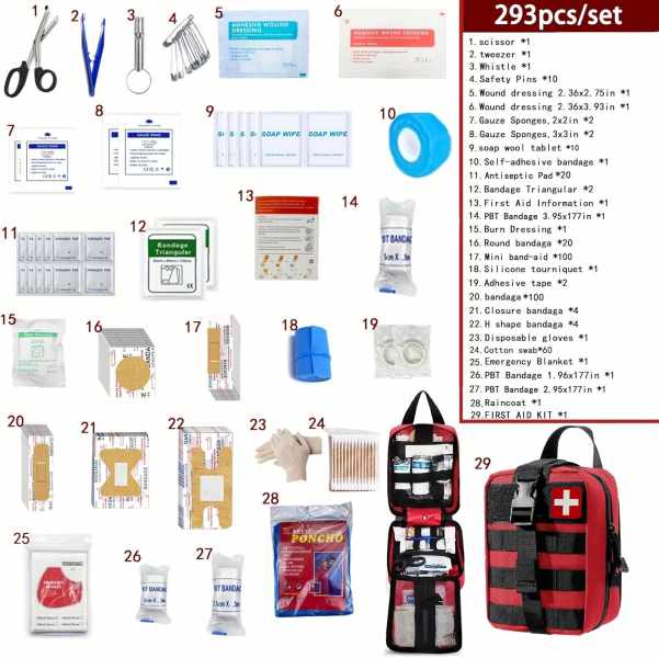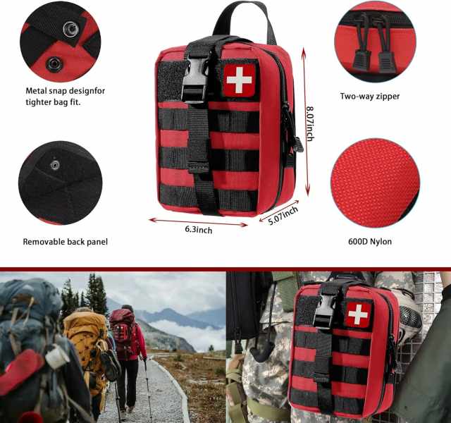 O kit tático de primeiros socorros de sobrevivência MOLLE para uso emergencial e externo foi projetado para caminhantes, campistas, equipes de resgate e qualquer pessoa que se prepare para emergências inesperadas ao ar livre. Usando materiais duráveis e resistentes às intempéries e de nível profissional componentes, esteO kit fornece ferramentas essenciais para sobrevivência, navegação, primeiros socorros e sinalização de emergência.